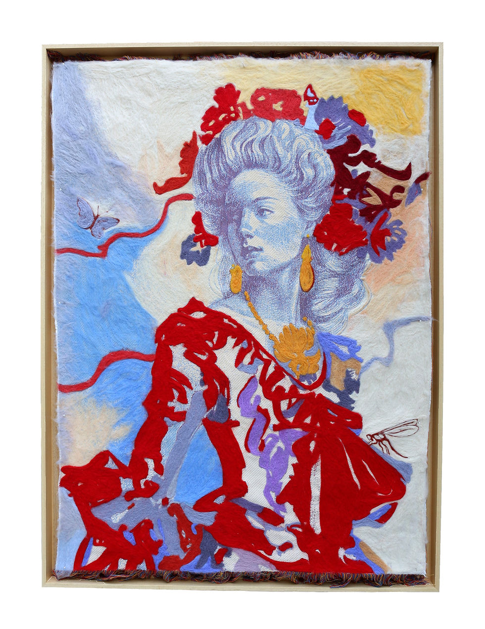 For me, art is not just expression—it is survival. It is joy, purpose, and the purest form of freedom. Now, after fifteen years in the United States, I live with an abundance of materials and the freedom to pursue my vision without fear. With that freedom, I have returned to the feeling I had as a child: a boundless sense of joy in making. In this exhibition, I experiment across new mediums and surfaces: painting on wood slices, combining watercolor and ink on paper, creating wool-felting pieces, and even